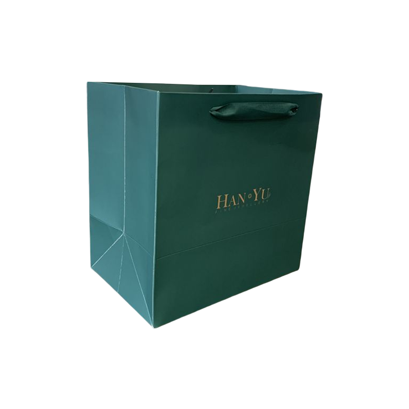 Kína Egyedi sötétzöld forróbélyegző ajándéktáska márkás bevásárlópapír táska 0wn logóval Szállítók és