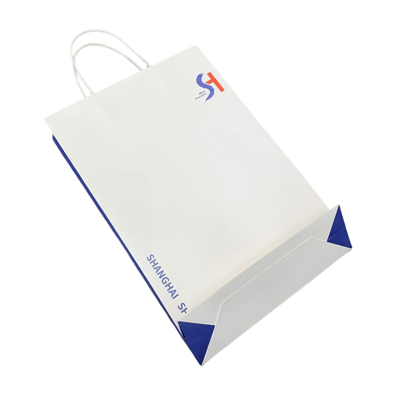 Kína Egyedi logó fehér papírzacskó márkájú bevásárlótáska Promóciós papírtáska fogantyúval ruházathoz Szállítók és